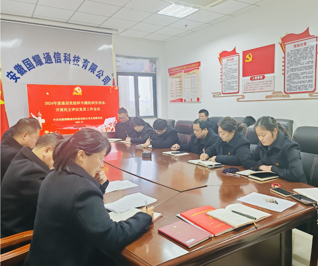為深入學(xué)習(xí)貫徹習(xí)近平新時代中國特色社會主義思想,加強黨員隊伍建設(shè),提升黨組織的凝聚力和戰(zhàn)斗力,2025年3月14下午,安徽國耀通信科技有限公司召開了2024年度基層黨組織專題生活會,并開展了民主評議黨員活動。會議由黨支部組宣委員盧文林同志主持,公司黨支部正式黨員、預(yù)備黨員、發(fā)展對象、積極分子及入黨申請人參加了此次大會。