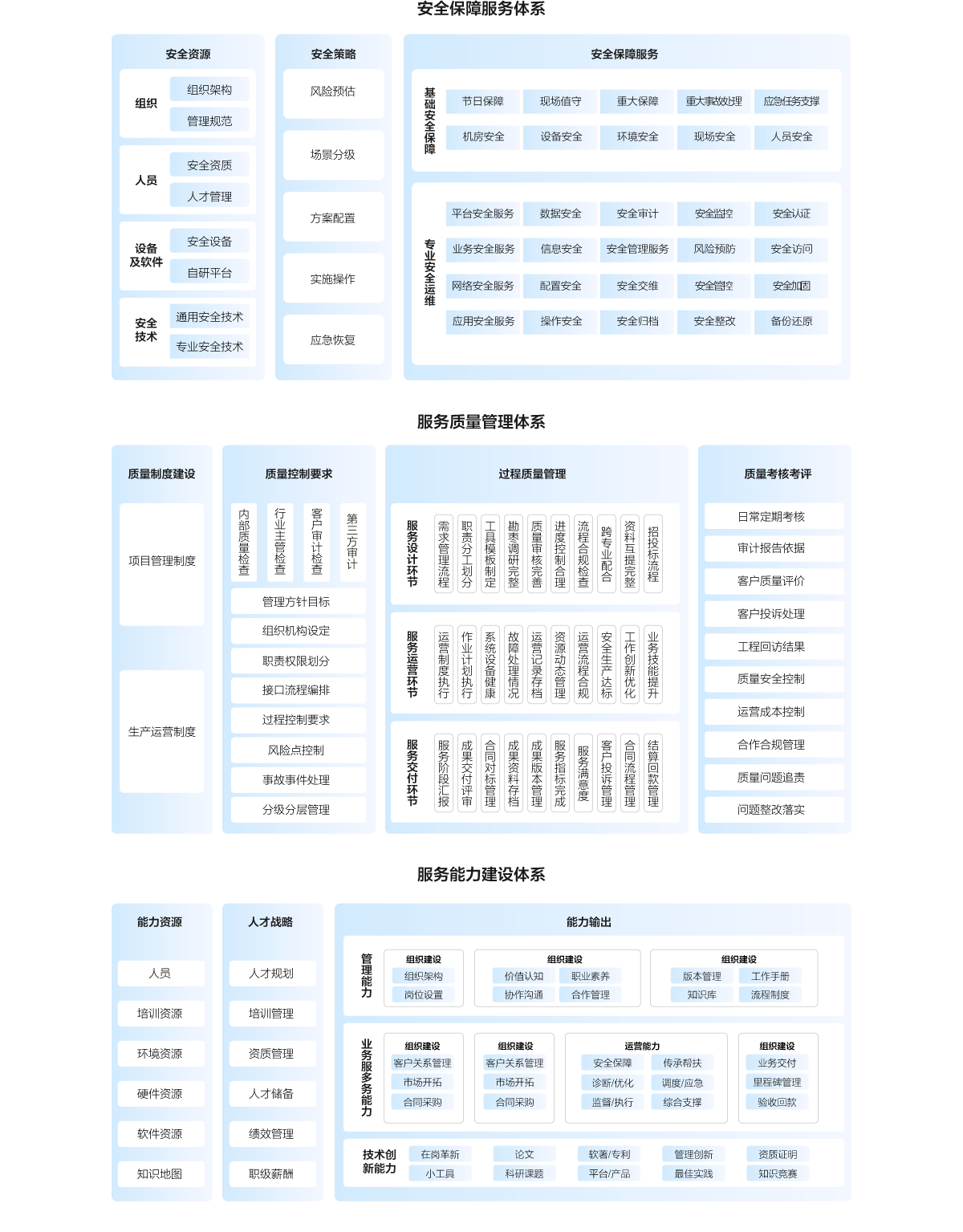 ITSS運維概述ITSS(Information Technology Service Standards,信息技術(shù)服務(wù)標(biāo)準(zhǔn))就是在這種情況下應(yīng)運而生的,它在工信部、國家標(biāo)準(zhǔn)化管理委員會聯(lián)合指導(dǎo)下,由國家標(biāo)準(zhǔn)化工作組提出,是國內(nèi)第一套成熟的體系化IT服務(wù)標(biāo)準(zhǔn)庫,為國內(nèi)從事IT服務(wù)的企業(yè)、公司及個人提供了依據(jù)和標(biāo)準(zhǔn),極大促進(jìn)了國內(nèi)IT運維技術(shù)的發(fā)展。IT運維服務(wù)體系認(rèn)為IT服務(wù)主要由人員、資源、產(chǎn)品和服務(wù)管理組成,并對這些IT服務(wù)的組成要素進(jìn)行說明和標(biāo)準(zhǔn)化。其服務(wù)體系主要由安全保障服務(wù)體系、服務(wù)質(zhì)量管理體系和服務(wù)能力建設(shè)體系組成。